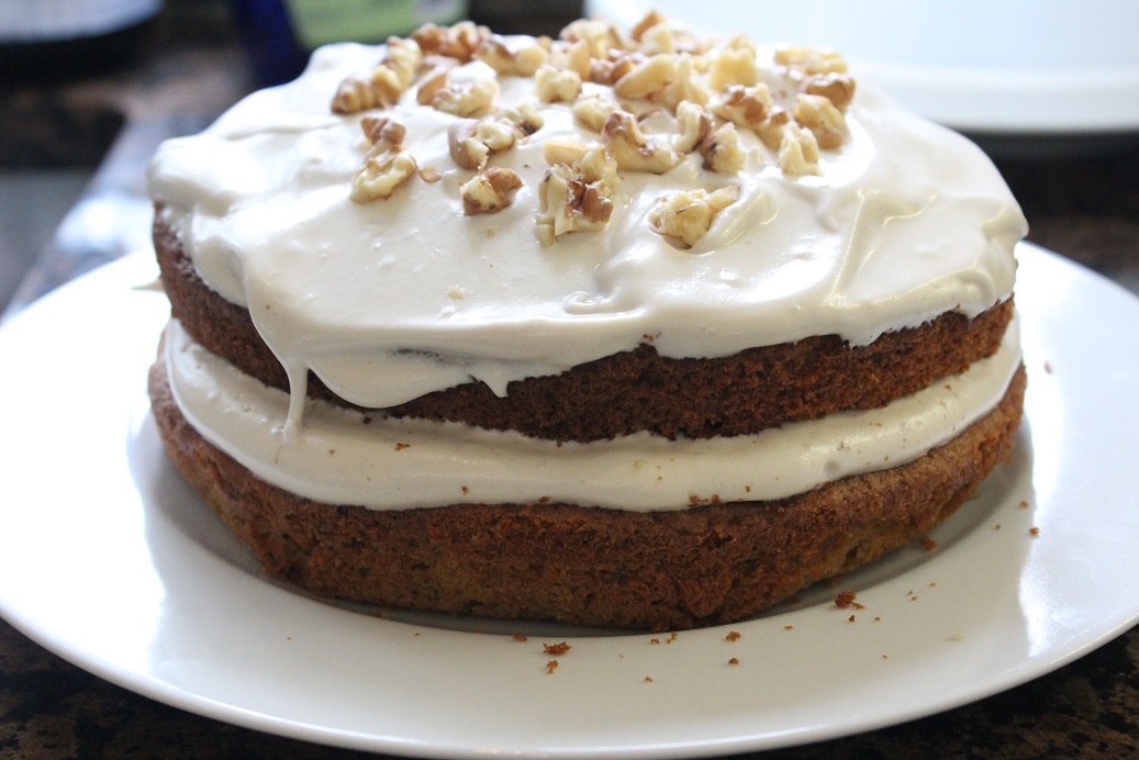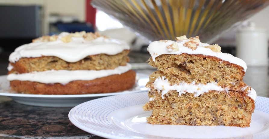 carrot and walnut, Carrot cake, easy carrot cake recipe, maple syrup frosting