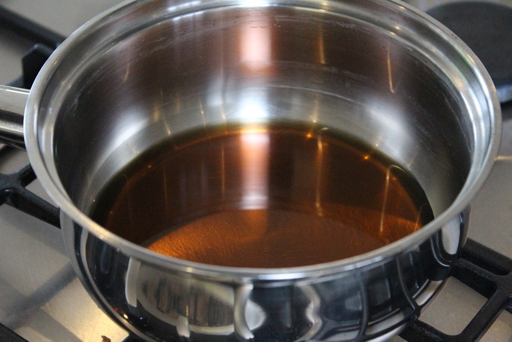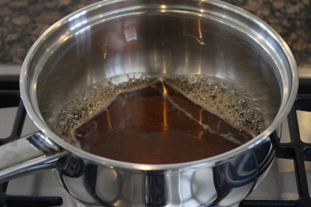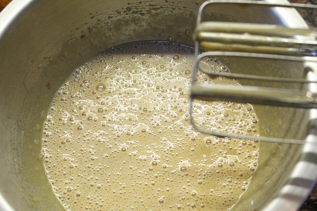 5) Pour the maple syrup into a saucepan and heat to 115*C (240*F) on a sugar thermometer. As the temperature begins to rise, whisk the egg whites and salt in a clean bowl until stiff. When the syrup is ready, whisk into the egg whites in a thin trickle until the frosting is like a meringue mixture. Keep whisking for a few minutes more until very thick.