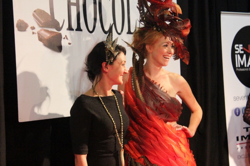 So after having a look around it was time to get excited for the evening event which was a Chocolate Fashion show! The seats got filled up pretty fast and the majority of press took their place at the end of the catwalk, ready to take pictures of the models as they walked down. I had spent a bit too much time wandering around the stalls so decided to stand near the front of the catwalk to take pictures of the models as they came out on the carpet. It was all very exciting and we were served delicious canapés of mackerel and goats cheese tarts as well as some of the most delicious brownies I had tasted.