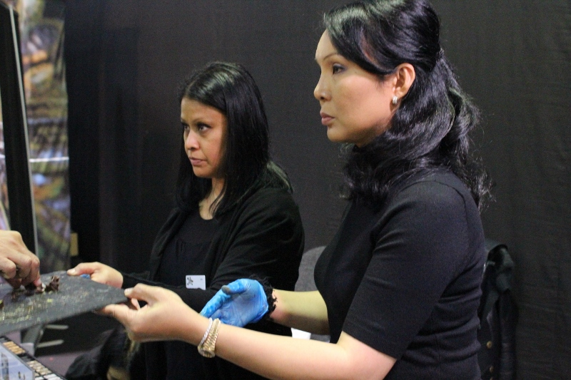 The Salon Du Chocolat event took place from Friday 18th to Sunday 20th October and was the first ever London edition. The event had been in full swing earlier in the day with plenty of the UK’s best chocolate companies from Paul A Young to international brands such as Lindt. When we arrived some of the exhibitors had gone for the evening, most likely resting up or preparing for their second busy working day; however there was still plenty of opportunity to walk around and read about the companies as well as sample lots of chocolate from the exhibitors who were still around…always a bonus!