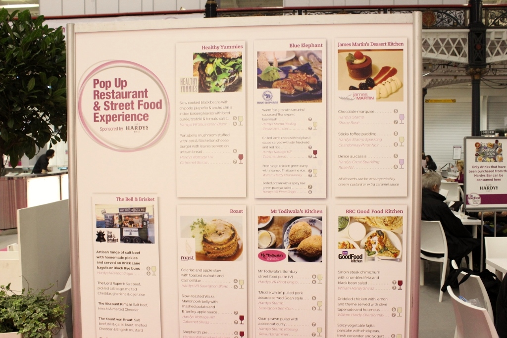 Below are pictures from the Pop up restaurant and Street Food Experience where customers had the opportunity to buy food from some of the top chefs and from the best restaurants in the UK. This included: Roast, Blue Elephant, Mr Todiwala’s Kitchen, James Martin Dessert Kitchen and BBC Good Food Kitchen.