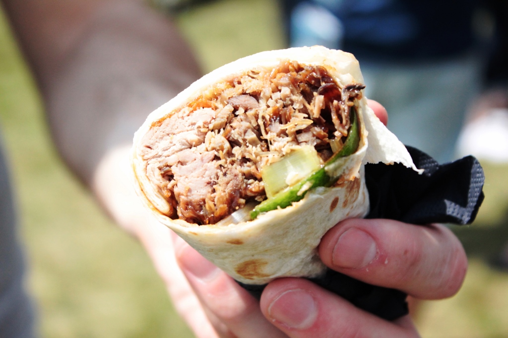 The mixture of smells hit me right away, from hog roast, to crispy duck, paella and morrocan tagine, there was definitely a fine variety of cuisines to try. I was quite keen to have a wander around, sample a few things before buying, however Craig’s rumbling stomach signalled he wanted food and was on a mission to find it. A lover of duck he was easily pleased when he came across The Duck Truck stall. They had a relatively big que which I usually take as a sign that the food has to be good and it didn’t disappoint. Craig opted for the duck wrap which was crispy shredded duck marinated in a hoisin sauce with lettuce and wrapped up in a tortilla. Again I don’t tend to eat a lot of duck from having a bad experience eating it when I was younger but I ended up eating almost half of Craig’s wrap!