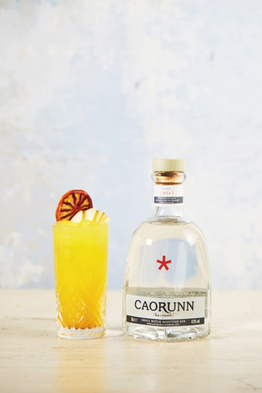 Method: In a shaker with ice, combine Caorunn, apple, orange and pineapple juice and turmeric. Shake hard and strain into a long glass filled with ice and top up with soda water. Garnish with a dehydrated orange slice.